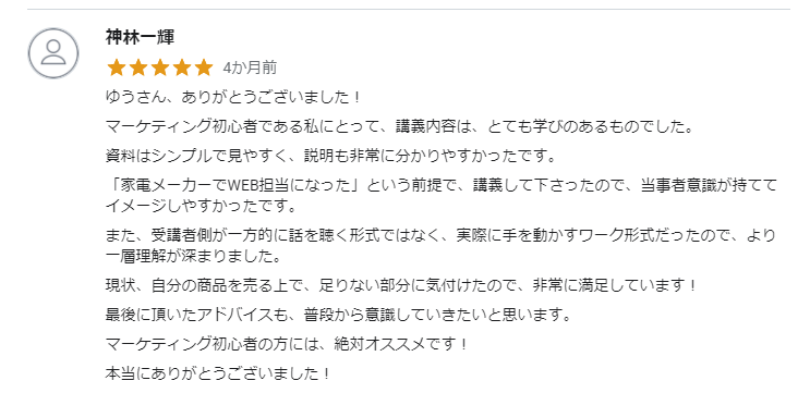 入門マーケティング講座の口コミ